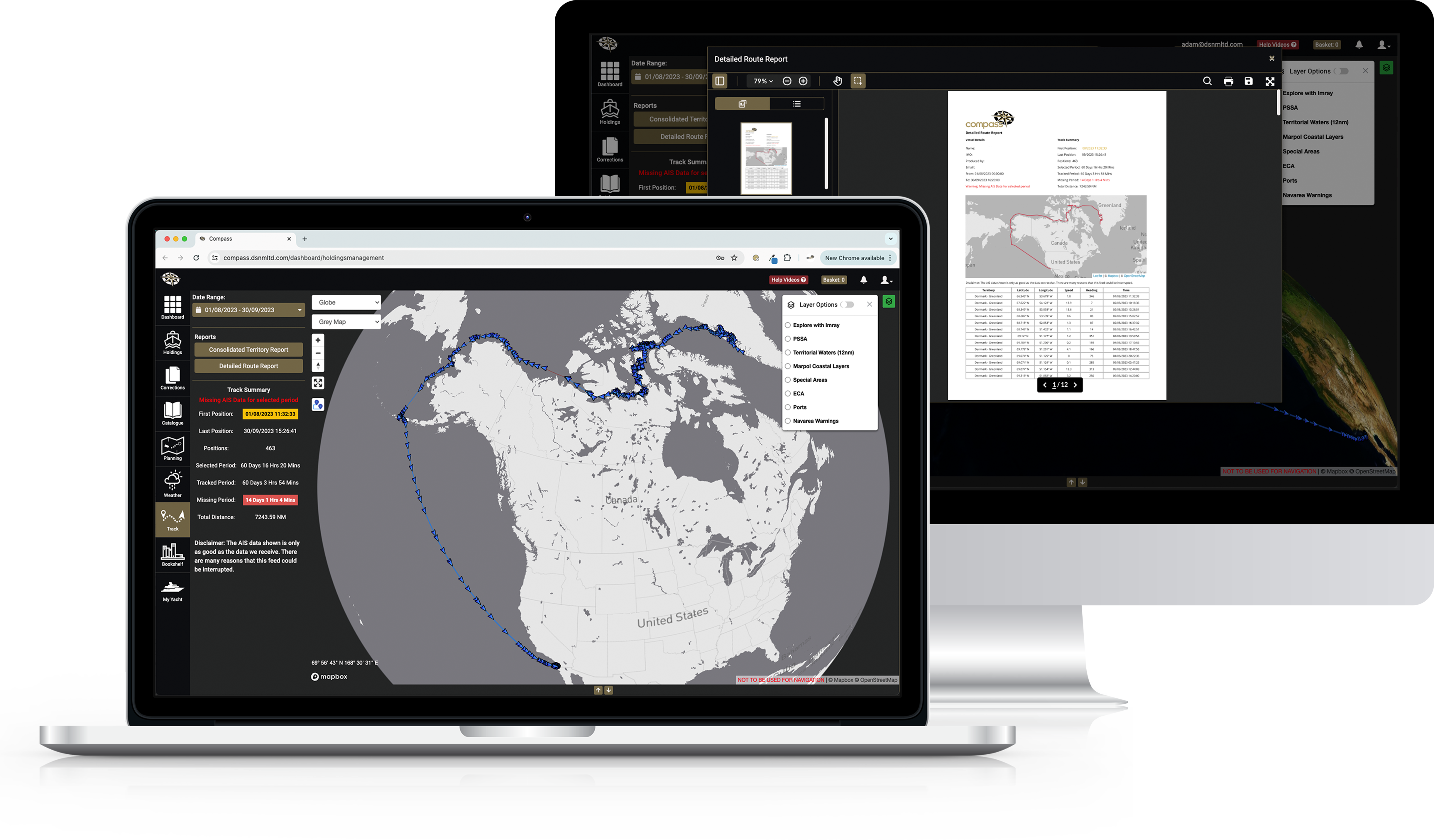 Compass Track lets crew view the AIS history of their vessel based on a specified period.